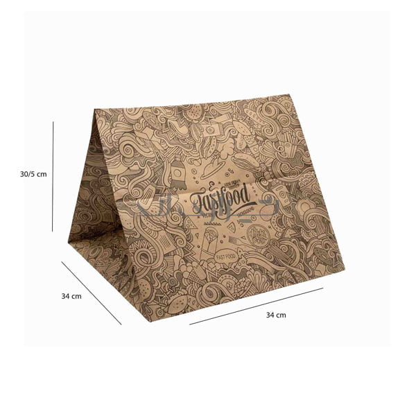 يعد ظرف البيتزا العائلي المطبوع أحد العبوات الأكثر شيوعًا للمطاعم ومطاعم الوجبات السريعة، والتي يمكن إعادة تدويرها. بالإضافة إلى مظهره الجذاب، فإن هذا المنتج ذو نوعية جيدة ويمنع الأطعمة الموجودة داخل الظرف من البرودة. أبعاد هذا الظرف هي 34 × 34 سم.