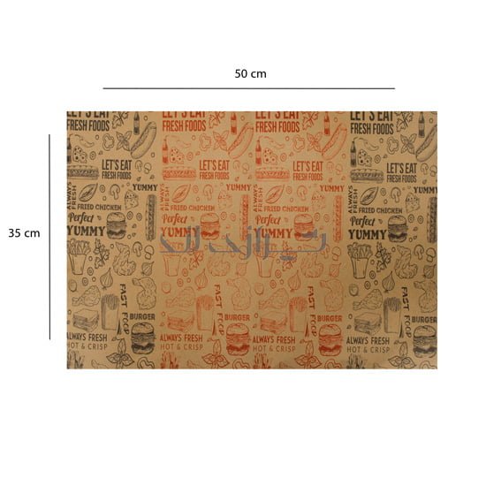 يعد ورق ورق الكرافت المطبوع مهمًا في الوجبات السريعة والمطاعم. يمكن استخدامه على صواني وسلال تقديم البطاطس وجميع أنواع الأطعمة المقلية، وكذلك تحت الأطباق في المطاعم.